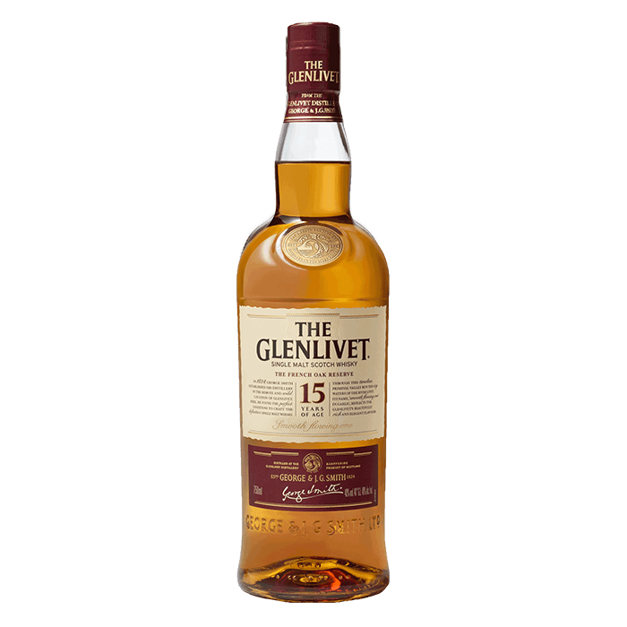 Glenlivet 15 Years Old is matured in French Limousin Oak casks, offering notes of chewy resinous wood with a well-balanced acidity. The palate is full and rich with winter spice; cinnamon and cloves, thick oak with developing aridity. The finish is long and dry with a peppery note.